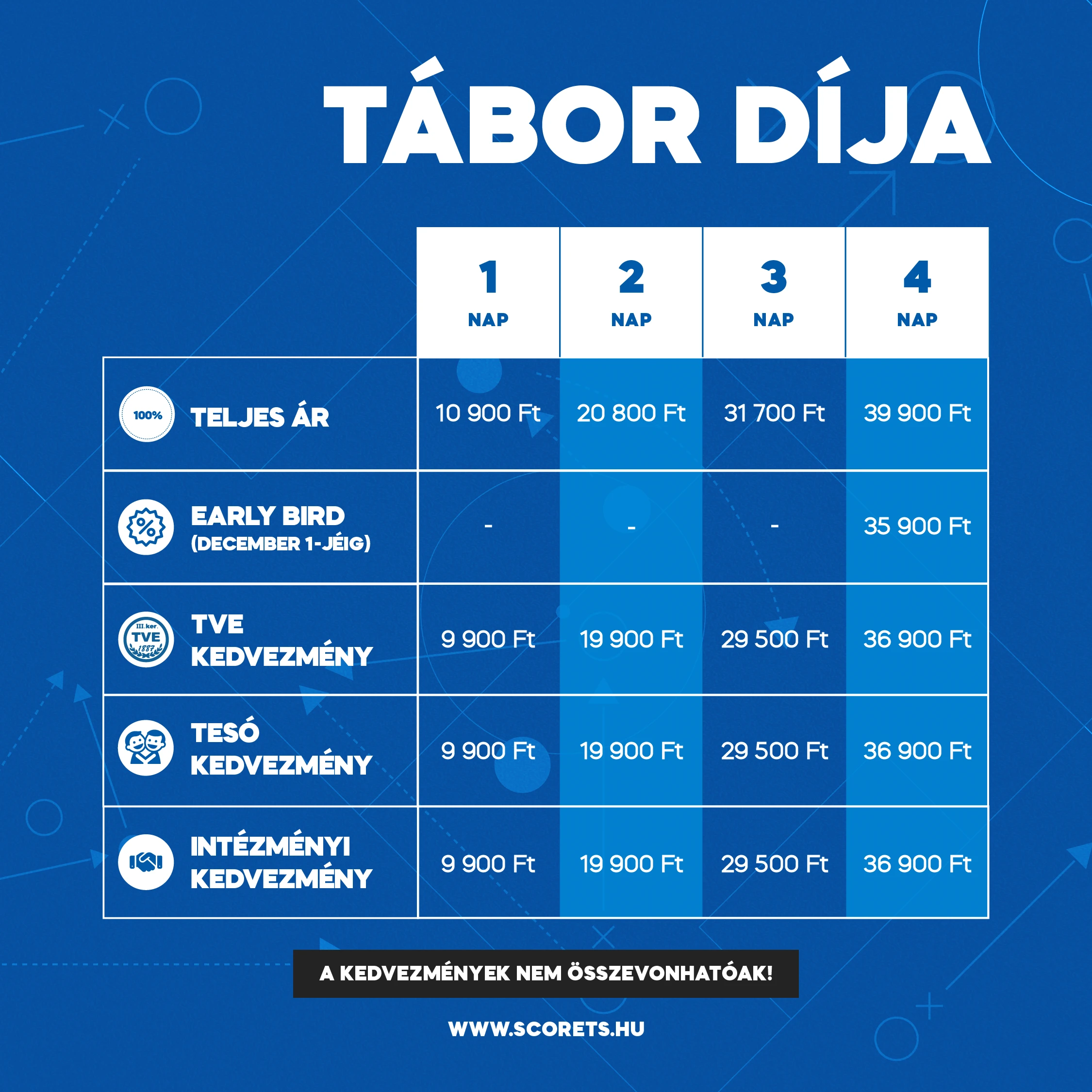 Több ezer tudatos labdaérintés, különböző játékhelyzetek, az edzések céljának megfelelő meccsszituációk és az elmaradhatatlan Score torna vár rátok.