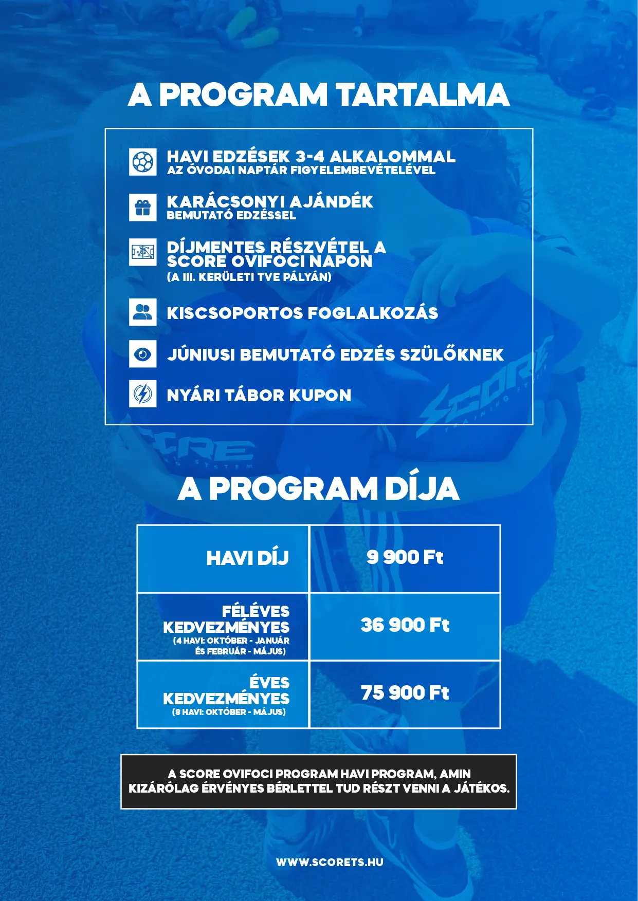 A Score Training egy speciális képzési rendszer, ahol kiemelt célunk a gyermekek egyéni fejlesztése, technikai, fizikai, mentális és kognitív területen.